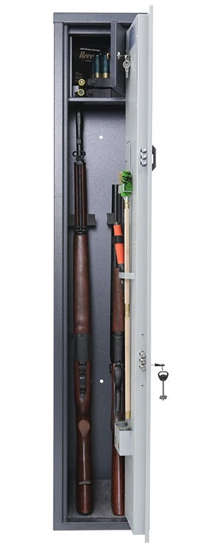 - Сейф Беркут-1 EL оборудован ложементами, которые плотно фиксируют стволы в вертикальном положении.