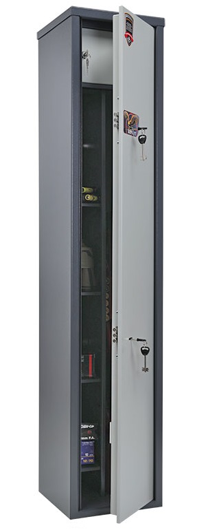 - В верхней части сейфа расположен трейзер (запирающееся на ключ отделение для патронов) размерами 198×296×140 мм. За узким трейзером остаётся свободное пространство, которое позволяет хранить ружья, по длине соответствующие высоте всего сейфа.