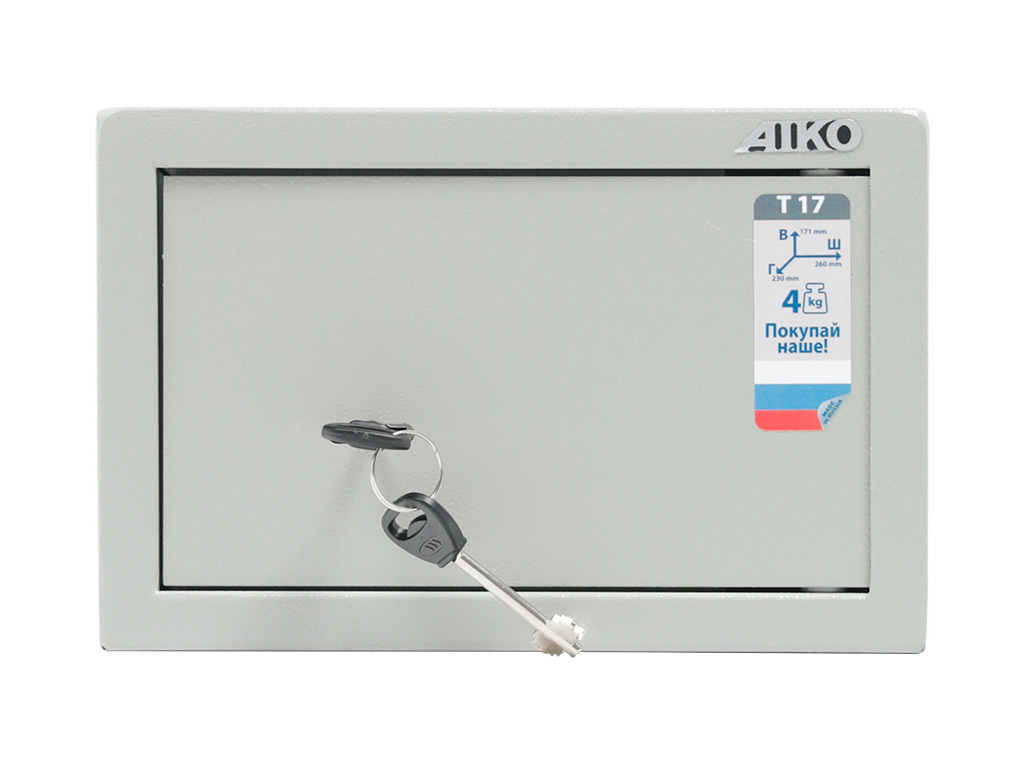 - — Офисный сейф Aiko T-17 имеет сертификат соответствия стандартам ГОСТ на начальную устойчивость ко взлому и соответствует требованиям МВД РФ к хранению огнестрельного оружия.