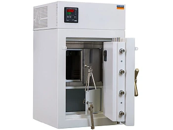 Рабочая камера сейфа холодильника оснащается двумя отдельными термостатами которые выполнены из нержавеющей стали и оснащены дверцей с замком. Рабочая камера сейфа холодильника Valberg TS выполнена из нержавеющей стали и оснащена отдельной дверцей.