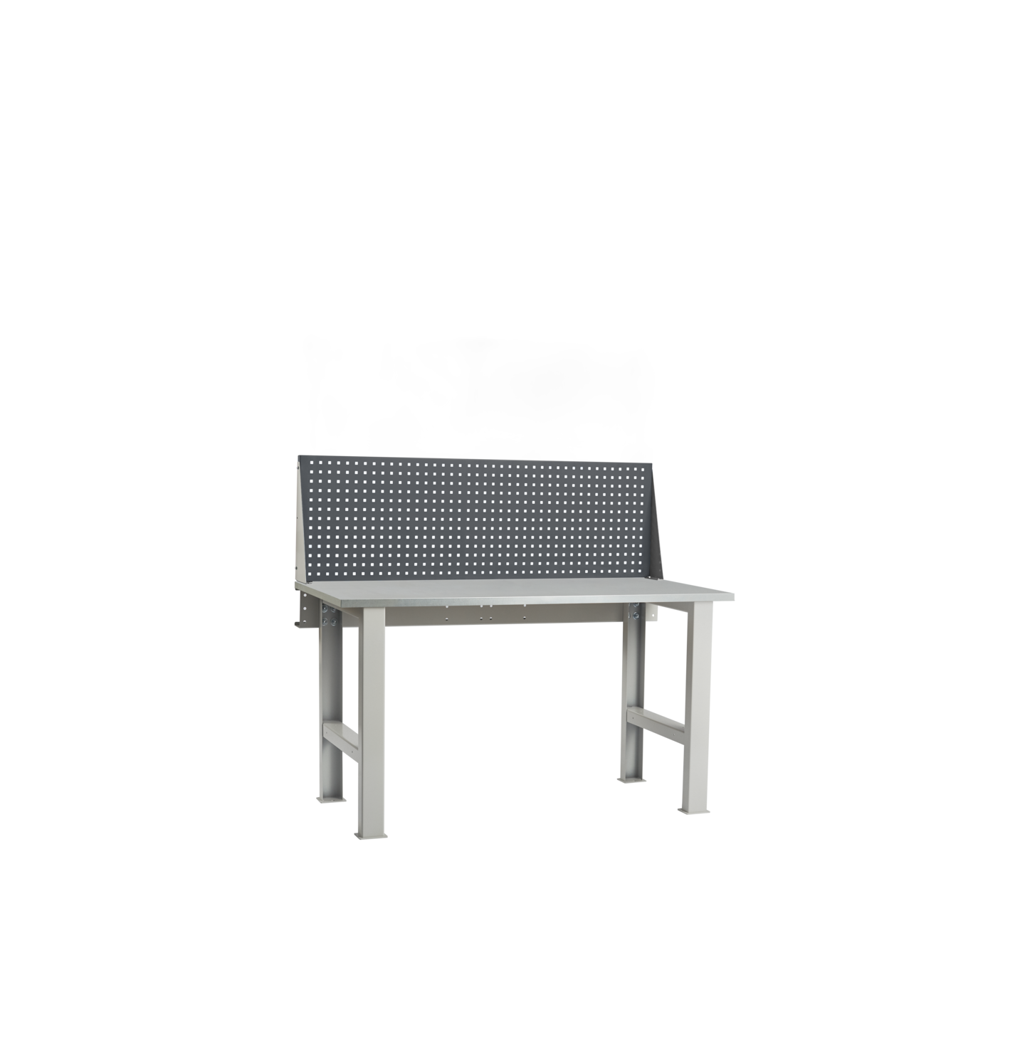 Основной функциональной частью верстака ВЛ-150-01-Э1 ЦФ комплектуется перфорированным экраном и столешницей из влагостойкой фанеры толщиной 24 мм с слоем оцинкованного металла(0,8 мм), которая устанавливается на металлические сварные опоры. Длина столешницы – 1500 мм, глубина – 700 мм. Все металлические элементы окрашены эпоксидной порошковой краской серого цвета (RAL 7038). Такая краска защищает от мелких царапин и появления коррозии.